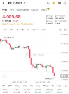 Ethereum (ETH), kripto piyasasının önde gelen ikinci varlığı olarak, kısa vadeli fiyat hareketleriyle yatırımcıların dikkatini çekmeye devam ediyor. Bugün itibarıyla ETH, 4000-4010 $ bandında işlem görmesine rağmen 3966 $ seviyelerine kadar gerileyerek, son 48 günün ardından ilk kez 4.000 $ kritik destek seviyesinin altına indi. Bu düşüş, kısa vadeli volatiliteyi ve piyasalarda artan baskıyı net bir şekilde ortaya koyuyor.