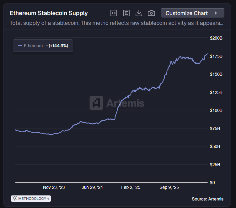 Bu ölçeklenme etkisine ek olarak stablecoin arzındaki genişleme de dikkat çekti. Ethereum üzerinde ihraç edilen stablecoin toplamı çeyrek sonunda yaklaşık 180 milyar dolar seviyesine ulaştı. Bu varlıklar, DeFi protokolleri, ödeme sistemleri ve sınır ötesi transferlerde yoğun şekilde kullanılıyor.