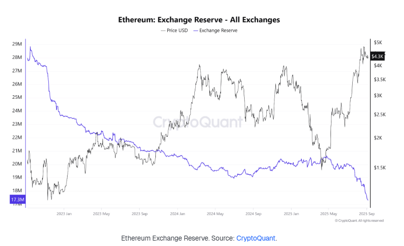 Kripto piyasası, Eylül’ün ilk haftasında 3,8 trilyon dolar civarında yatay seyretti. Ancak bazı altcoinlerde ciddi rezerv düşüşleri gözlendi. Ethereum (ETH) borsalardaki rezervlerini 17,3 milyon ETH’ye çekti.