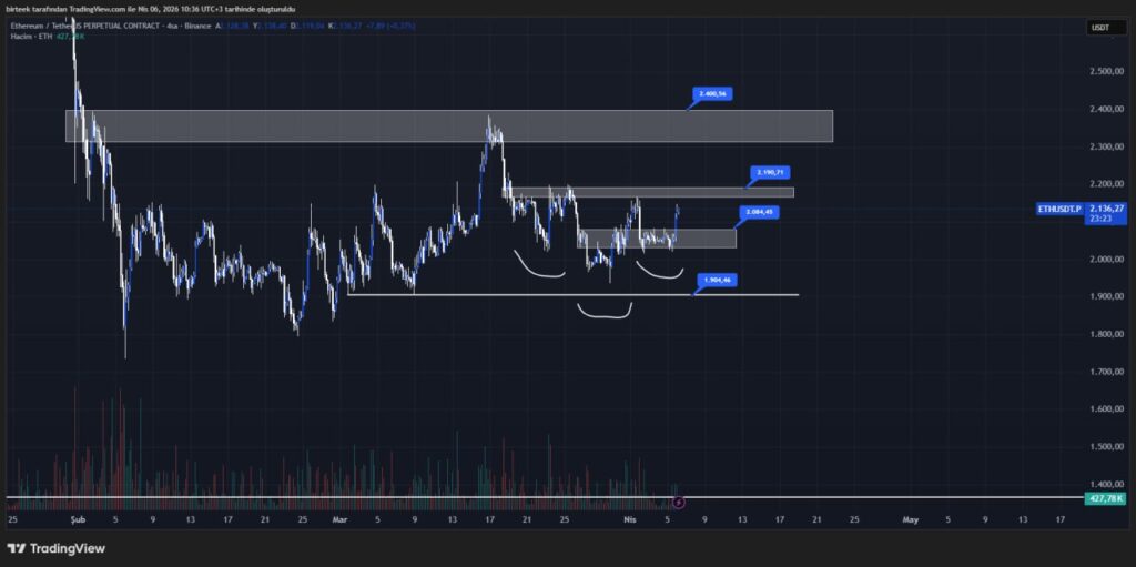 ETH, 2.140 dolarda işlem görürken, gün içinde %5’lik sağlıklı bir artış kaydetti. Analistler, 2.200 doların üzerindeki dört saatlik kapanışı, düşüş yapısını geçersiz kılmak için kritik bir seviye olarak tanımlıyor.