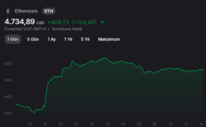 Ethereum (ETH), Fed Başkanı Jerome Powell’ın Jackson Hole konuşmasında faiz indirimlerinin yakın olabileceğine işaret etmesi sonrası güçlü bir ralli başlatarak 4.869 doları aşarak Kasım 2021’deki rekorunu geride bıraktı. Kısa süreliğine 4.887 dolara çıkan ETH, haber yayına hazırlanırken 4.734 dolar seviyesinde işlem gördü.