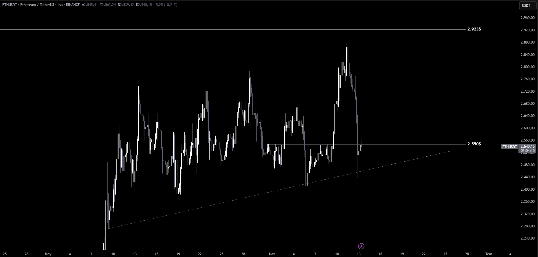 Öte yandan, trend çizgisinin altına inilmesi ya da grafik üzerinde bir alçalan üçgen formasyonunun netleşmesi durumunda görünüm negatife dönebilir. Bu senaryoda, ilk destek seviyesi olarak 2.360$ civarındaki bölge öne çıkıyor.
