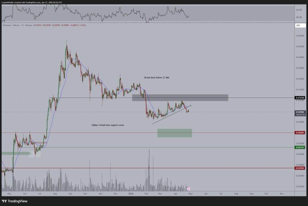 Bu kırılım sonrası teknik projeksiyon 0.028 BTC seviyesini hedef olarak gösteriyor. Bu hareket, sadece spot piyasadaki değil, göreli gücün de Ethereum aleyhine döndüğünü ortaya koyuyor.