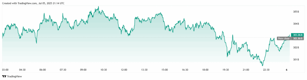 5 Temmuz 2025 itibarıyla Ethereum’un piyasa değeri 300 milyar doları aştı. Bunun yanında, pazar payı %9,10 seviyesine çıktı. Bu arada, ETH fiyatı da aynı dönemde %54 artış gösterdi. Bu rakamlar, yatırımcı güveninin ne kadar yükseldiğini gözler önüne seriyor.