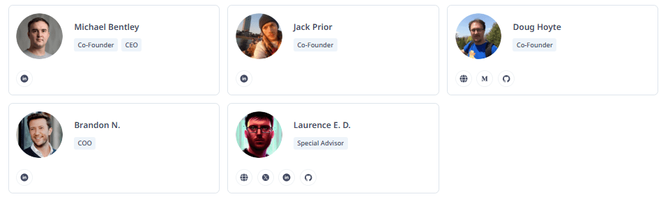 Euler, 2021 yılında Michael Bentley, Jack Prior ve Doug Hoyte tarafından kuruldu. Michael Bentley (CEO), protokolün vizyonunu yönlendirirken, Jack Prior ve Doug Hoyte teknik altyapıyı güçlendirir. Brandon N. (COO) operasyonları yönetir ve Laurence E. D. (Özel Danışman) stratejik rehberlik sağlar. Ekip, DeFi ve blokzincir alanında deneyimli uzmanlardan oluşur.