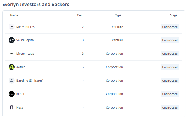 • Tier 3: Selini Capital (Girişim), Mysten Labs (Kurumsal).