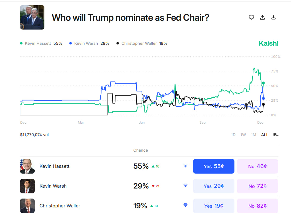 Tahmin piyasası Kalshi’de adayların olasılıkları hızla değişiyor. Kevin Hassett yaklaşık %50 olasılıkla önde görünürken, Kevin Warsh %29 seviyesinde bulunuyor. Waller ise %19’a yükselerek ivme kazanan bir aday olarak dikkat çekiyor. Bu durum, yarışın artık iki isimle sınırlı olmadığını gösteriyor.