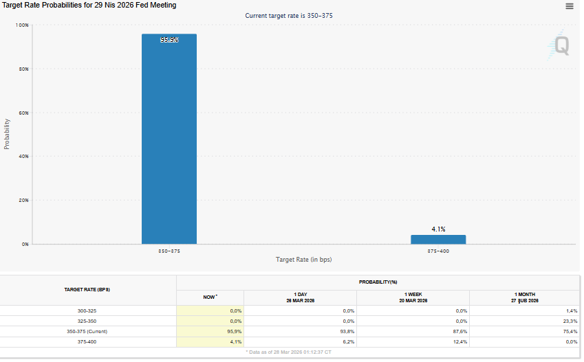 - %95,9 ihtimalle faizlerin %3,50 – %3,75 aralığında kalması bekleniyor