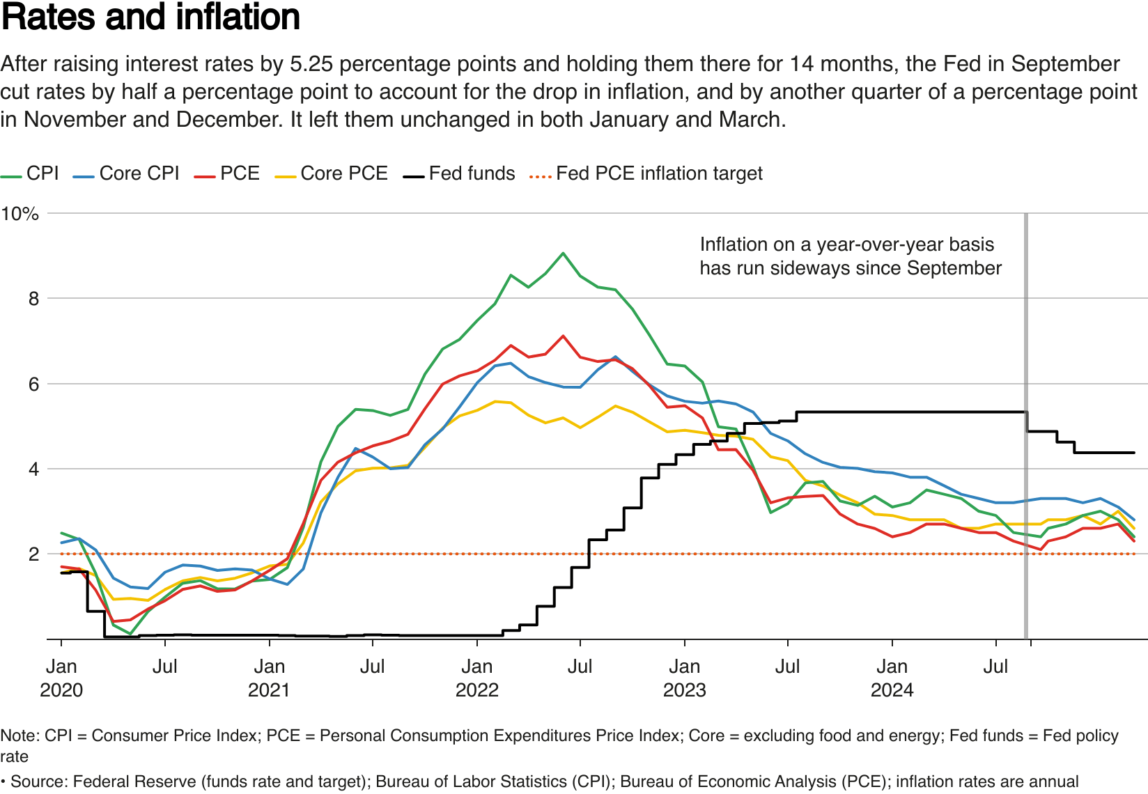 Fed’in önemsediği PCE enflasyonu Mart ayında %2,3 ile son altı ayın en düşük seviyesine geriledi. Ancak gıda ve enerji hariç çekirdek enflasyon hala %2,6 seviyelerinde. Buna ek olarak, Başkan Trump’ın tarifeleri yılın ilerleyen dönemlerinde enflasyonu artırabilir. Bu da Fed’in “bekle-gör” politikasını sürdürmesine neden oluyor.