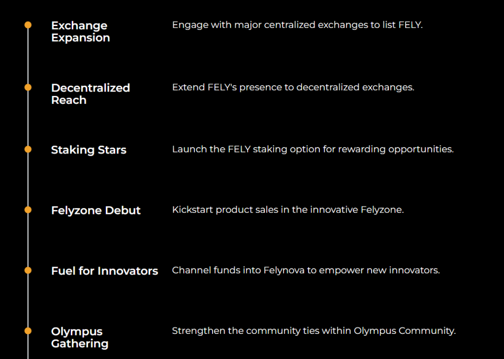 Kripto Alışveriş Merkezi (Felyzone): Geliştirilmekte olan Felyzone, kullanıcıların FELY tokenını gerçek dünyadaki ürünleri alıp satmak için kullanabileceği, kripto paranın günlük yaşamda kullanımını amaçlayan bir pazar yeridir.