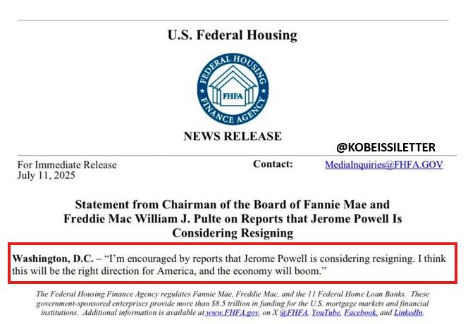 Amerikan ekonomi yönetiminde dikkat çeken bir gelişme yaşandı. ABD Federal Konut Finansman Ajansı (FHFA) Başkanı Bill Pulte, Jerome Powell’ın görevinden ayrılabileceğine dair söylentilerle ilgili çarpıcı bir açıklamada bulundu.