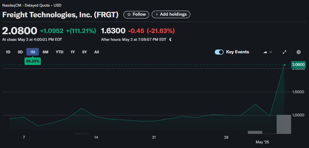 Lojistik şirketi geçtiğimiz hafta eski ABD Başkanı Donald Trump’ın adını taşıyan meme coin TRUMP için tam 20 milyon dolarlık bir yatırım planladığını açıkladı. Bu duyurunun ardından Freight Technologies isimli firmanın hisseleri kısa sürede %75 oranında yükseldi.