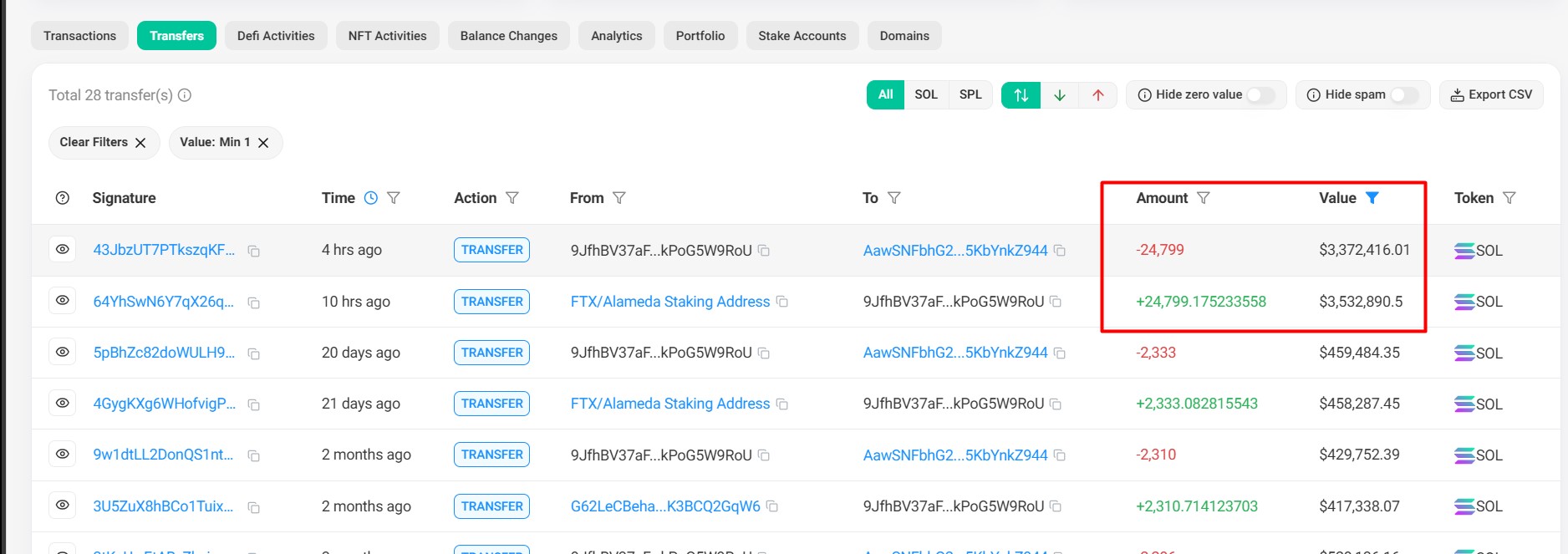 • Yaklaşık 25.000 SOL (3,3 milyon dolar değerinde) Binance’e yatırıldı.