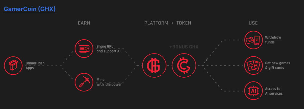• GamerHash AI Uygulaması: Kullanıcıların işlem gücü paylaşarak GHX kazandığı ana platformdur.