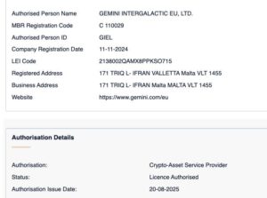 Bu lisans sayesinde Gemini, Avrupa Birliği’nin 30’dan fazla ülkesinde düzenlenmiş şekilde hizmet sunabilecek.