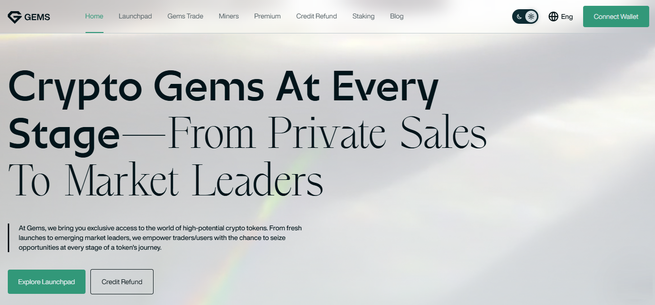 Gems Launchpad, teknoloji ve bilim startu’pları için özel bir fonlama merkezi. Web3 ve blockchain kullanan projelere odaklanıyor: Oyun, AI, fintech, tedarik zinciri, yönetişim. Platform, projeleri titiz inceleyerek “gerçek gems”leri öne çıkarıyor.