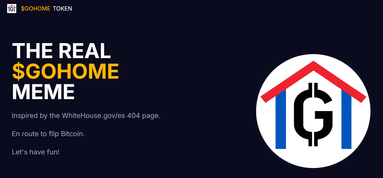 Gohome (GOHOME), Bitcoin’in fiyatını aşmayı hedefleyen, topluluk odaklı bir meme token’dır. 21 Ocak 2025’te, Başkan Trump’ın yemin töreninin ertesi günü, Beyaz Saray web sitesinden İspanyolca versiyonu kaldırılmış ve 404 hata mesajının altına “go home” butonu eklenmiştir; bu daha sonra “go to home page” olarak güncellenmiştir. Bu olay, $GOHOME meme’inin doğuşuna yol açmıştır. Meme’den topluluğa evrilen $GOHOME, uygun etiket, heyecan verici misyon ve ince mizah üzerine kuruludur. Bu yazıda, Gohome nedir, ne işe yarar, tokenomics detayları nedir? İnceleyelim.