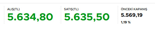 - Gram altın: Alış 5.634,89 TL / Satış 5.635,57 TL