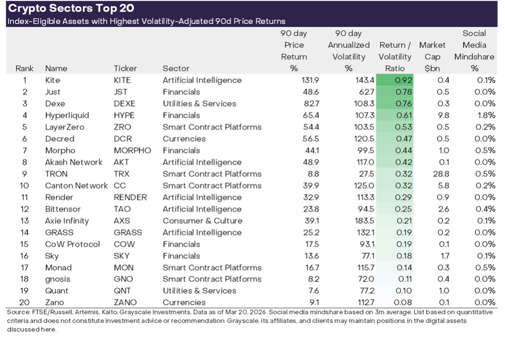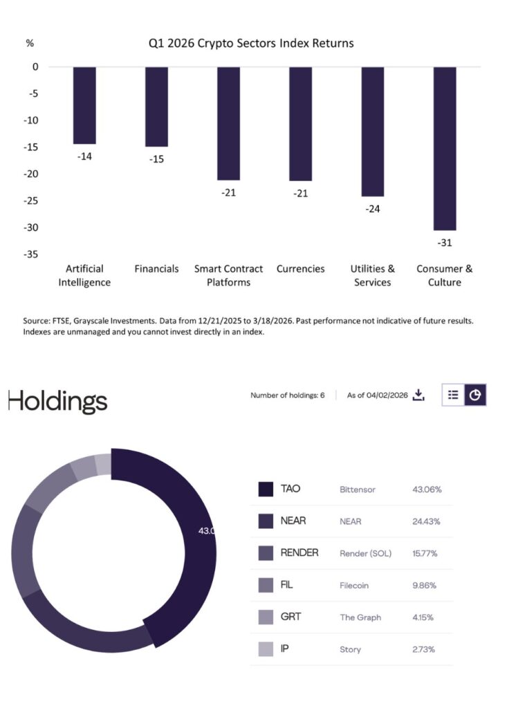 Grayscale’in 2026 yılının ilk çeyreğine ait raporu, kripto piyasasında sermayenin 21 Aralık 2025 – 18 Mart 2026 tarihleri arasında nereye “saklandığını” verilerle ortaya koydu. Tüm sektörler kırmızıya boyanırken, Yapay Zeka (AI) sektörü %14’lük sınırlı düşüşüyle adeta bir sığınak görevi gördü. Ancak bu başarının ardında, Bittensor (TAO) ve NEAR üzerinden yürüyen yoğunlaşmış bir portföy yapısı bulunuyor.