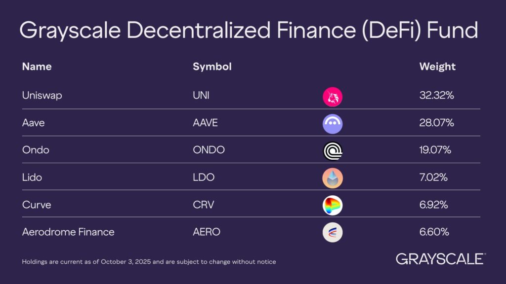 Q3 2025 itibarıyla Grayscale’in DeFi Fonu (DEFG) portföyünde önemli değişiklikler yapıldı.