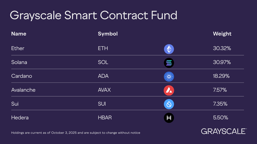 Grayscale, Smart Contract Fonu (GSC) portföyünü Q3 2025’te dengeledi ve mevcut bileşenlerin ağırlıklarını güncelledi.