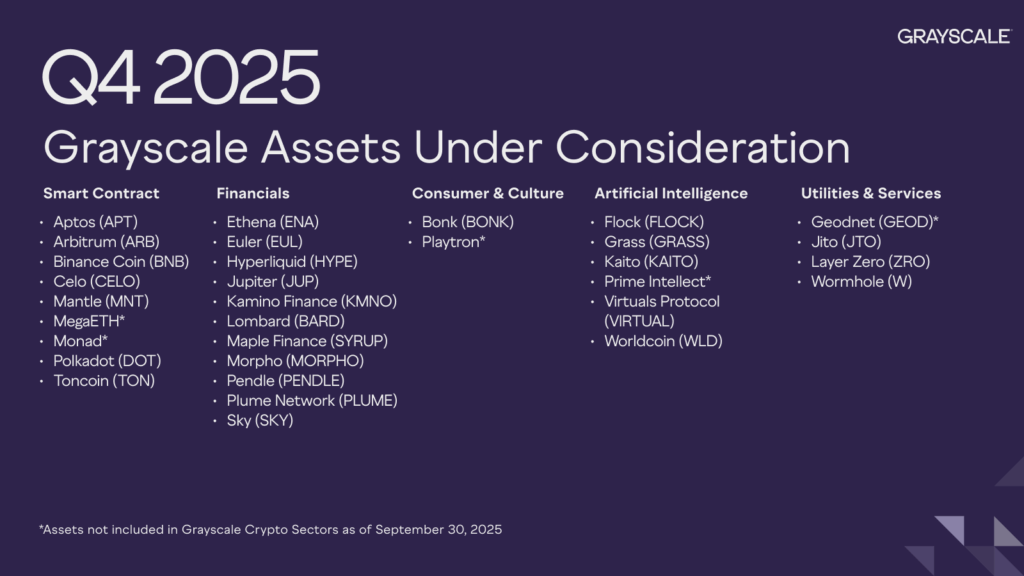 Grayscale’in güncel “Assets Under Consideration” listesi artık toplam 32 kripto parayı kapsıyor.