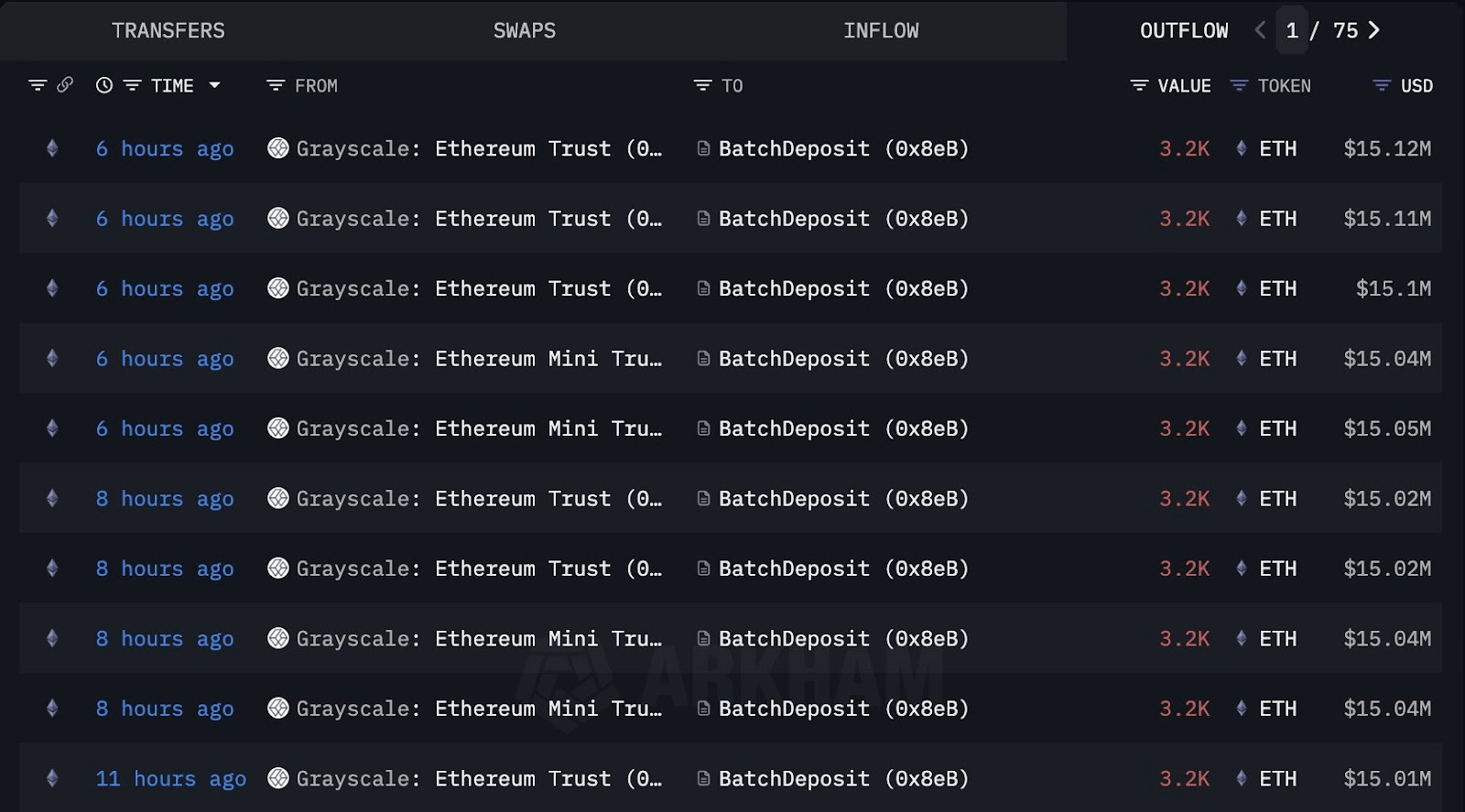 Blockchain verilerine göre Grayscale, toplamda 32.000 ETH stake etti. Bu miktar yaklaşık 150 milyon dolar değerinde. İşlem, şirketin Ethereum ETP’lerinde staking özelliğini başlatmasından sadece bir gün sonra gerçekleşti.
