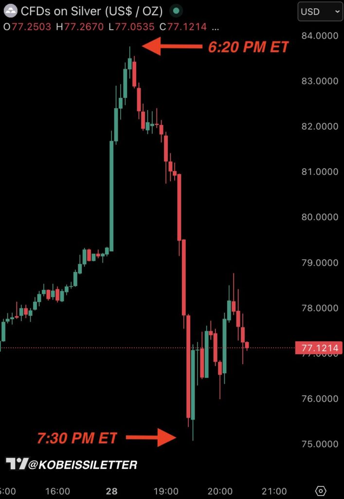 Hafta sonu silver, rekor seviyelere ulaştıktan kısa süre sonra sert düşüş yaşadı. U.S. saatine göre Pazar günü, gümüş fiyatları $83,75’e tırmandı, ardından bir saat içinde $75,15’e gerileyerek %10 değer kaybetti. Altın da benzer şekilde yükseliş gösterdi ve $4.530 seviyelerini gördü. Bu sert dalgalanmalar, değerli metallerin beklenenden daha volatil olduğunu ortaya koydu.