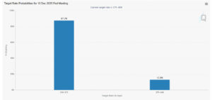 Piyasalarda faiz indirimi beklentisi yalnızca yorumlara değil, somut anket sonuçlarına da dayanıyor. Reuters tarafından yapılan ankete göre ekonomistlerin %82’si gelecek hafta 25 baz puanlık bir kesinti bekliyor. FedWatch verileri ise bu ihtimali %87,2 olarak gösteriyor.