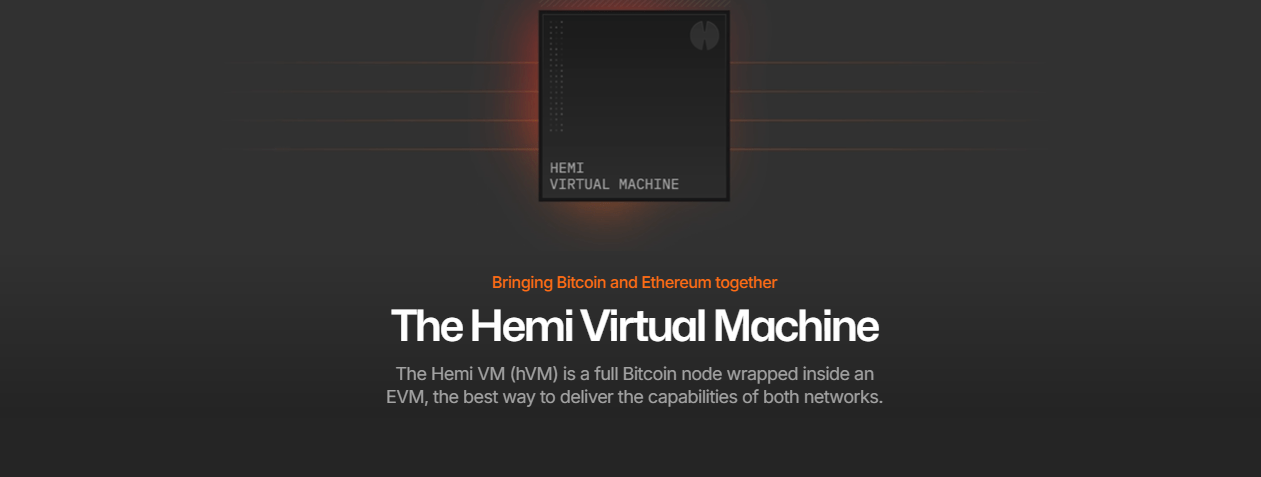 Sistemin çekirdeği, Hemi Virtual Machine (hVM)’dir. hVM, bir tam Bitcoin düğümünü Ethereum Sanal Makinesi (EVM) içinde kapsar. Hemi Bitcoin Kit (hBK), hVM’nin yeni Bitcoin birlikte çalışabilirlik özelliklerini geliştiriciler için erişilebilir hale getirir. Böylece Hemi, geliştiriciler için bir Ethereum Layer-2 ağı kadar tanıdık olurken, Bitcoin’in yeteneklerini tamamen entegre eder ve yüzeye çıkarır. Hemi’nin Bitcoin farkındalığını veya çift ağ varlık sistemini kullanan uygulamalar, çok zincirli yeteneklerini ifade etmek için “hApps” olarak adlandırılır.