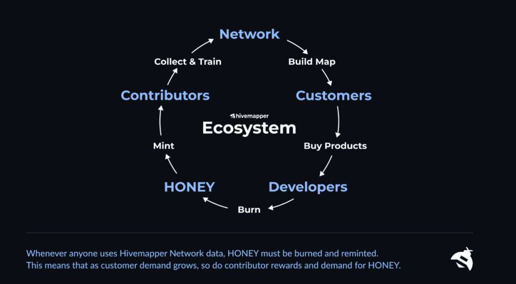 Hivemapper, merkezi olmayan, küresel bir haritalama ağıdır. “Kazanmak için Sür” (Drive-toEarn) modeliyle, arabalarına yapay zeka kameraları takan ve pasif olarak harita verisi toplayan kullanıcılara HONEY tokenı ile ödüller verir. Geliştiricilerin harita verilerine erişmek için HONEY’i kullanması gerekir, bu da tokena sürekli bir temel talep yaratır. Hivemapper Ağı, Kasım 2022’de piyasaya sürüldü. Katkıları karşılığında HONEY token ile ödüllendirilirler. Haritalar; otonom sürüş, ADAS, lojistik, emlak ve devlet gibi alanlarda kullanılabilir.