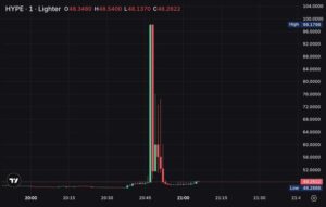 27 Ekim sabahında Lighter borsasında yaşanan beklenmedik bir olay, kripto topluluğunun gündemine oturdu. Hyperliquid (HYPE) tokeni, dakikalar içinde 48 dolardan 98 dolara fırlayarak değerini iki katına çıkardı. Söz konusu hareket, grafikte uzun bir yeşil mum olarak görüntülendi ve kısa sürede sosyal medyada viral hale geldi.