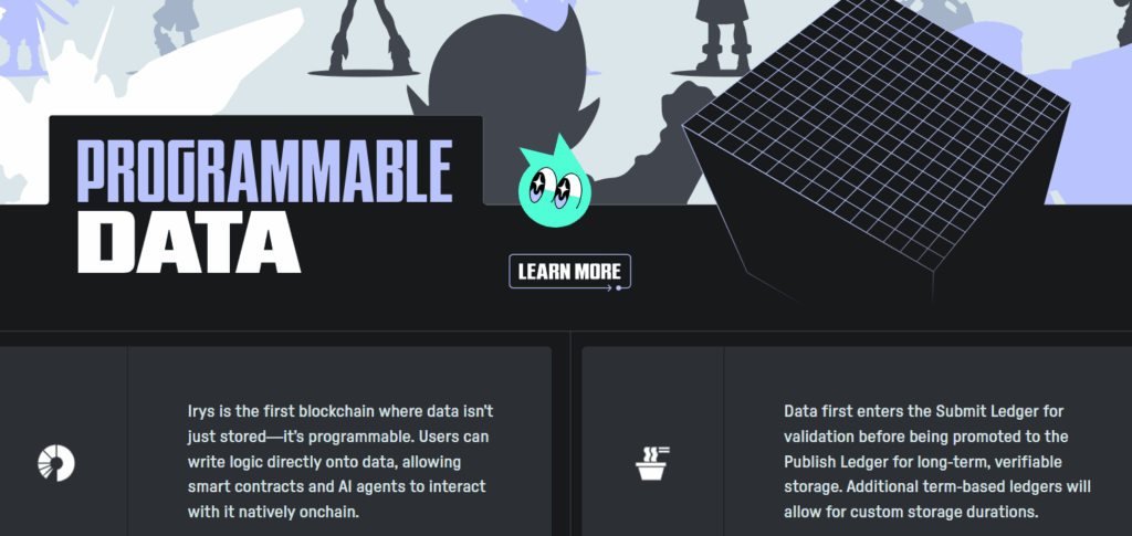 Irys, veriyi yalnızca saklayan değil, programlanabilir hâle getiren ilk blockchain’dir. Kullanıcılar, veriye doğrudan mantık (logic) yazabilir; bu sayede akıllı sözleşmeler ve AI ajanları veriyi zincir üzerinde doğal biçimde kullanabilir.