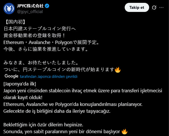 JPYC’nin piyasaya sürülmesi, Japonya için dijital finans tarihinde önemli bir dönüm noktası olarak görülüyor. Ülke, bu adımla birlikte düzenlenmiş stablecoin piyasasında Asya liderliğini hedefliyor. JPYC’nin yasal uyumlu yapısı, çoklu blok zinciri desteği ve kurumsal entegrasyon planları, Japon finans sisteminde dijital dönüşümü hızlandırabilir. Uzmanlara göre, bu gelişme yalnızca Japonya için değil, küresel stablecoin rekabetinde de yeni bir sayfa açabilir.