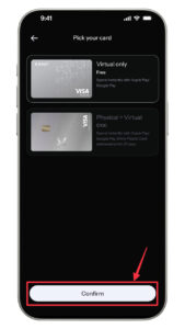 - Kart türünü seçin (Sanal / Fiziksel): Sanal kart: Anında kullanım için idealdir, Fiziksel kart: Mağaza, ATM ve yüz yüze işlemler için uygundur