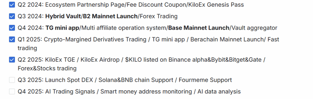 2025: KiloEx TGE, $KILO listelenmesi Binance, Bybit, Bitget ve Gate üzerinde, spot DEX lansmanı, Solana & BNB desteği, AI ticaret sinyalleri ve smart money adres izleme.