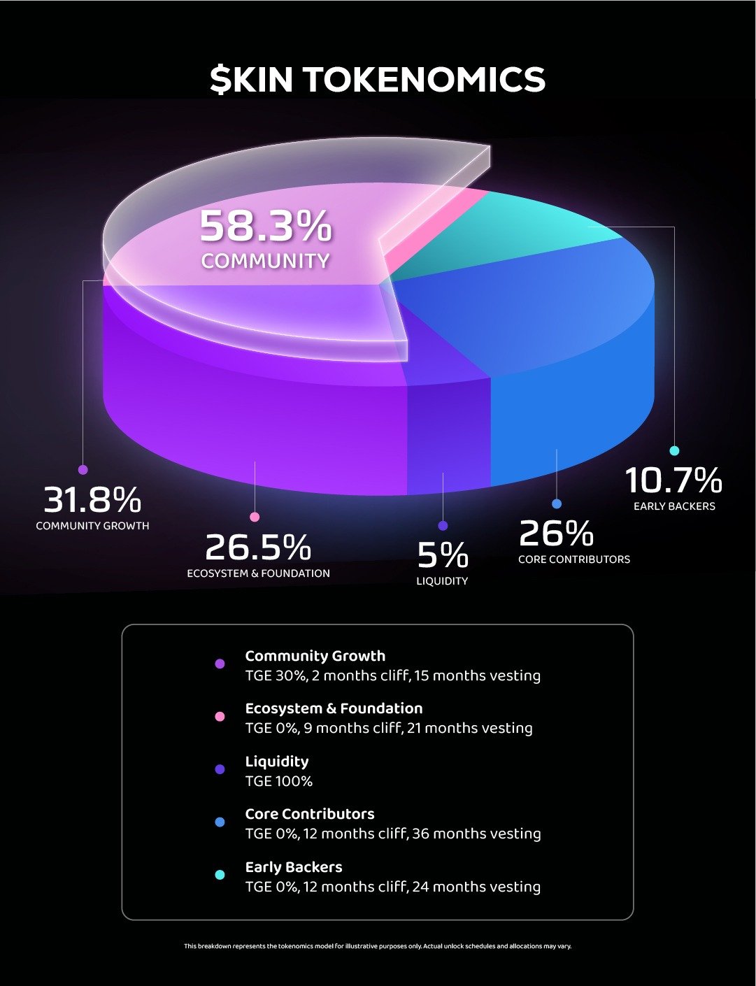$KIN, Kindred ekosisteminin yerel token’ıdır ve sistemin işleyişini doğrudan destekler. Tokenomics yapısı kısa vadeli spekülasyondan ziyade uzun vadeli sürdürülebilirliği hedefler.