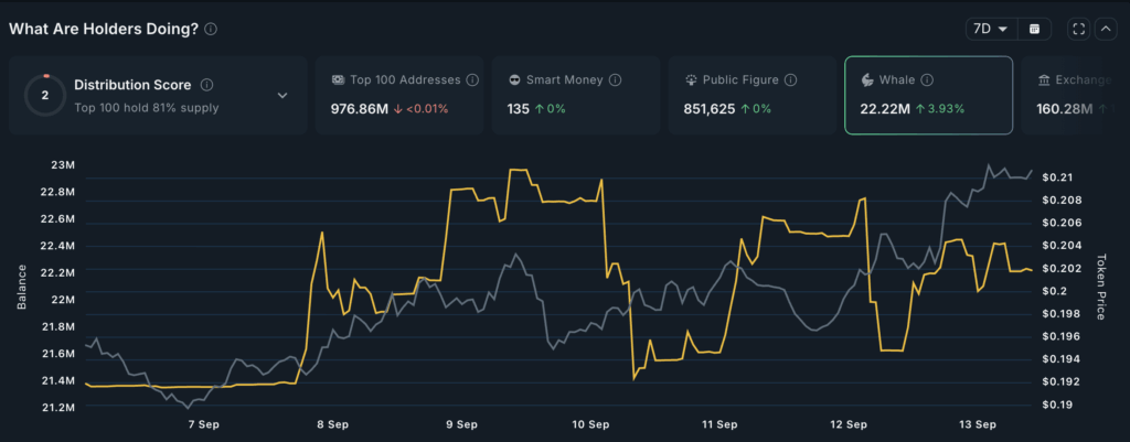 Meme coin MELANIA da balina ilgisini artıran bir diğer coin oldu. Nansen verilerine göre, balina sahipliği %4 oranında arttı. Bu gelişme, MELANIA’nın kısa vadede 0,2237 dolara yükselmesini destekleyebilir. Bu durum, yatırımcılar için yükselen coinler arasında MELANIA’yı öne çıkarıyor.