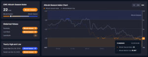 Duygudaki toparlanmaya rağmen yatırımcı davranışları temkinli. CoinMarketCap’in Altcoin Sezonu Endeksi: