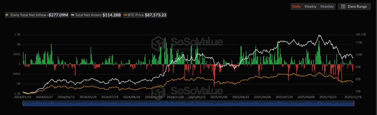 Bitcoin ETF’lerinden 277,09 milyon dolar değerinde çıkış yaşandı. Bu rakam, yatırımcıların kısa vadede risk iştahını azalttığını ve Bitcoin pozisyonlarında temkinli davrandığını gösteriyor. Özellikle makroekonomik belirsizlikler, faiz beklentileri ve fiyat dalgalanmaları, ETF tarafındaki satış baskısını artıran başlıca unsurlar arasında yer alıyor. Bitcoin fiyatında görülen yatay ve dalgalı seyir, kurumsal yatırımcıların bekle-gör stratejisini tercih ettiğini düşündürüyor.