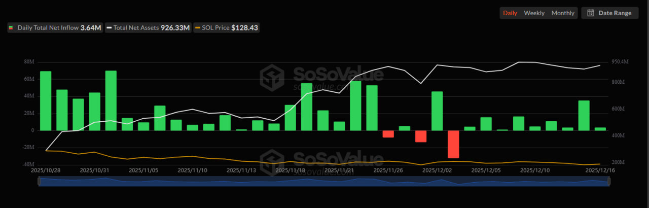 Solana ETF’lerinde 3,64 milyon dolarlık giriş kaydedildi. Solana’ya yönelik bu sınırlı ama pozitif akış, özellikle ağın yüksek işlem hızı, düşük maliyet yapısı ve büyüyen DeFi ile NFT ekosisteminin yatırımcılar tarafından yakından takip edildiğini ortaya koyuyor. Solana, altcoin ETF’leri arasında istikrarlı ilgi gören projelerden biri olmaya devam ediyor.