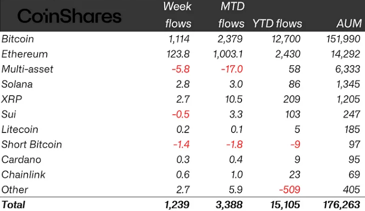 Son günlerde kripto para piyasasında yaşanan dalgalanmalara rağmen, yatırımcıların kripto fonları ilgisi güçlü kalmaya devam etti. CoinShares tarafından yayımlanan son rapora göre, küresel kripto yatırım ürünleri (ETP) 1.24 milyar dolarlık yeni girişle haftayı kapattı. Böylece yıl başından bu yana toplam giriş miktarı 15.1 milyar dolara ulaşarak yeni bir rekor kırmış oldu.
