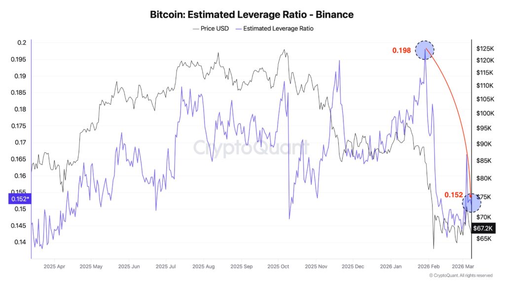 “Böyle dönemler genelde risk almayı cazip kılmaz. Binance’de Bitcoin’in Tahmini Kaldıraç Oranı’ndaki keskin düşüş de bunu gösteriyor.”