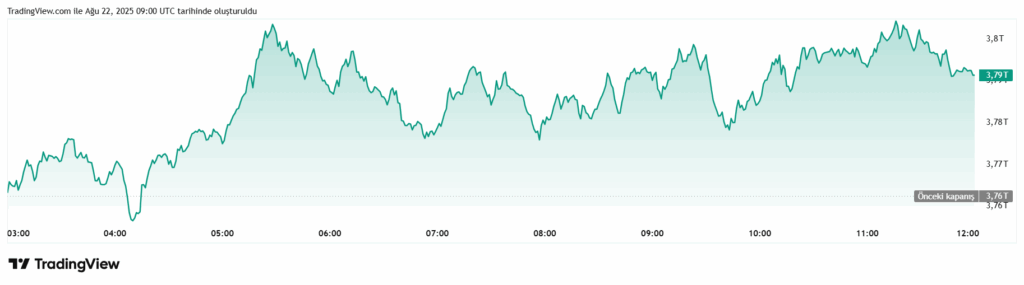 TOTAL, 15 Ağustos’tan bu yana momentum kaybederek yatay seyre geçti. Eğer talep artarsa 3,85 trilyon dolar aşılabilir ve 3,94 trilyon dolara doğru bir hamle gerçekleşebilir. Ancak ayılar baskıyı artırırsa 3,73 trilyon doların altı test edilecek ve 3,57 trilyon dolara kadar geri çekilme yaşanacak.