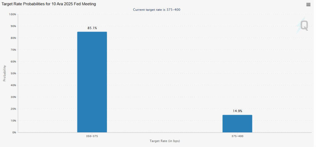 Piyasadaki iyileşme, Fed’in faiz indirimine gidebileceği beklentisiyle hız kazandı. Enflasyonun yavaşlaması ve iş gücü piyasasının soğuması, aralık ayında faiz indirimi ihtimalini %85’e çıkardı. Bu ortam risk iştahını artırdı. Teknoloji hisselerinde yaşanan hareket ivmeyi dijital varlıklara taşıdı. Yatırımcılar resesyon riskinin zayıfladığını görünce daha agresif pozisyonlar almaya başladı. Bu davranış kriptoya destek sağladı ve yükseliş zemini güçlendi.