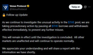 Kripto para piyasasında güvenlik endişelerini yeniden gündeme getiren dikkat çekici bir olay yaşandı. Merkeziyetsiz kredi ve borç alma platformu Venus Protocol, BNB Chain üzerinde gerçekleşen bir saldırı sonucunda yaklaşık 3,7 milyon dolarlık kayıp yaşadı. Platform tarafından yapılan açıklamaya göre saldırgan, Thena (THE) tokenını kullanarak protokoldeki arz sınırı mekanizmasını manipüle etti ve bu sayede sistemden birden fazla dijital varlığı ödünç almayı başardı. Zincir üstü veriler, saldırganın teminat mekanizmasını kullanarak farklı varlıkları çektiğini ve bu süreçte platformun likidite havuzlarını hedef aldığını gösteriyor. Olayın ardından Venus Protocol ekibi güvenlik önlemi olarak THE tokenına yönelik borçlanma ve çekim işlemlerini geçici olarak durdurduğunu açıkladı ve saldırının detaylarını incelemek için kapsamlı bir soruşturma başlatıldığını duyurdu.