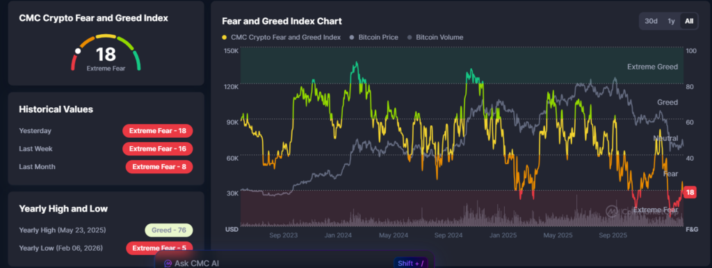 Kripto piyasasında yatırımcı psikolojisini ölçen en önemli göstergelerden biri olan Crypto Fear and Greed Index, yeniden “aşırı korku” bölgesine geriledi. Endeks yazım anında 18 seviyesinde bulunuyor. Bu değer, yatırımcıların riskten hızla uzaklaştığını ve piyasada güvenin belirgin şekilde zayıfladığını gösteriyor. Kısa süreli toparlanma denemeleri görülse de, makro riskler ve jeopolitik gerilimler kripto varlıklar üzerindeki baskıyı canlı tutuyor.