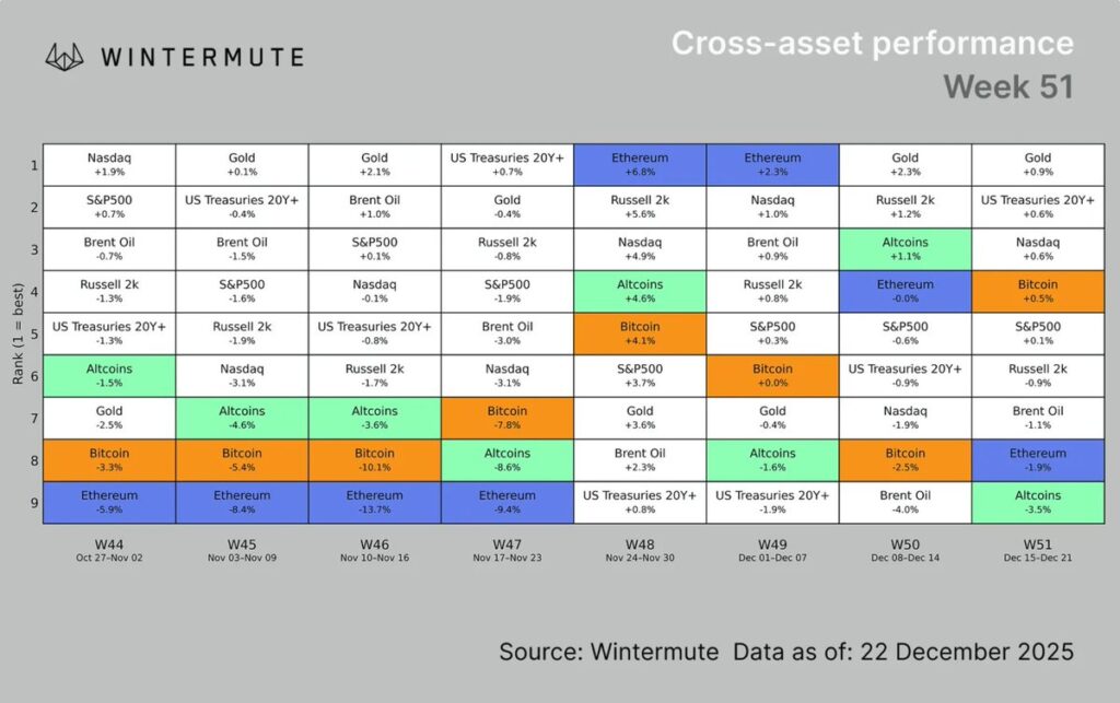 Kripto para piyasası yılın son haftalarına girerken dalgalı ve daralan bir yapıyla işlem görüyor. Wintermute’un son makro piyasa analizine göre, likiditenin zayıflaması ve artan arz baskısı altcoin’leri zorlamaya devam ediyor. Ve sermaye yeniden Bitcoin (BTC) ve Ethereum (ETH) etrafında yoğunlaşıyor. Özellikle perakende yatırımcı tarafında altcoin’lerden çıkış eğiliminin belirginleştiği görülüyor.