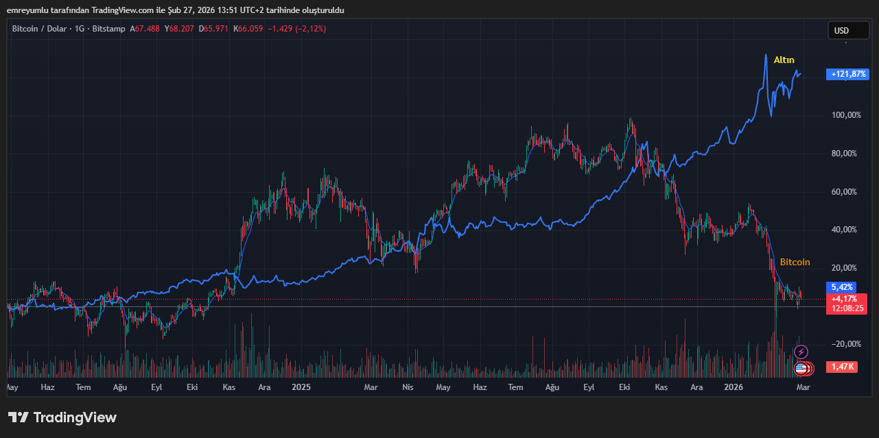 Bitcoin ise benzer likidite koşullarına rağmen daha oynak bir grafik çiziyor. Bunun temel nedeni, Bitcoin’in “çift kimliği” olarak öne çıkıyor. Altın yalnızca bir “sert para” varlığı olarak algılanırken, Bitcoin hem potansiyel bir dijital değer saklama aracı hem de spekülatif bir yatırım aracı olarak konumlanıyor.