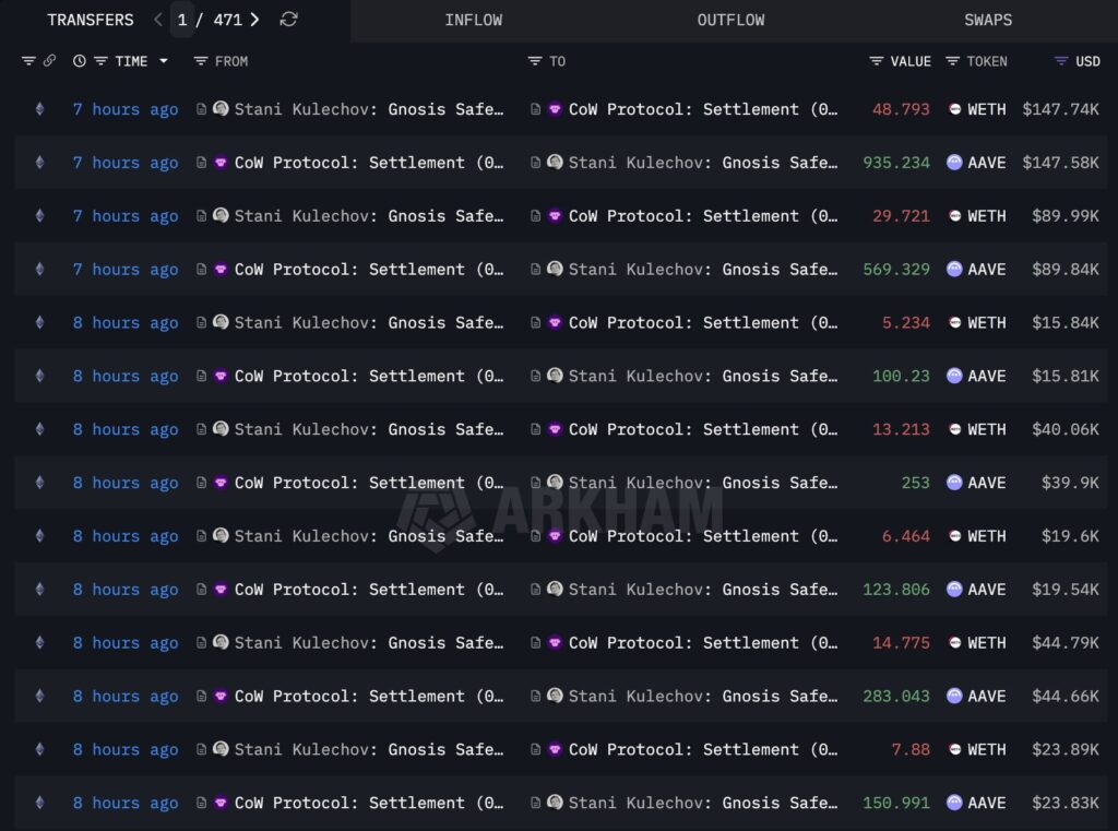 Kripto piyasalarında hareketlilik sürüyor. Aave kurucusu Stani Kulechov, düşen fiyatlara rağmen alımlarını sürdürüyor. On-chain veriler, Kulechov’un geçen hafta 84.033 $AAVE (~12,6 milyon $) satın aldığını ve ortalama maliyetinin 176 dolar olduğunu gösteriyor. Mevcut fiyatlarla portföyünde 2,2 milyon dolarlık gerçekleşmemiş zarar bulunuyor. İşlemlerin çoğu CoW Protocol üzerinden parçalı şekilde ve WETH kullanılarak yapılmış.